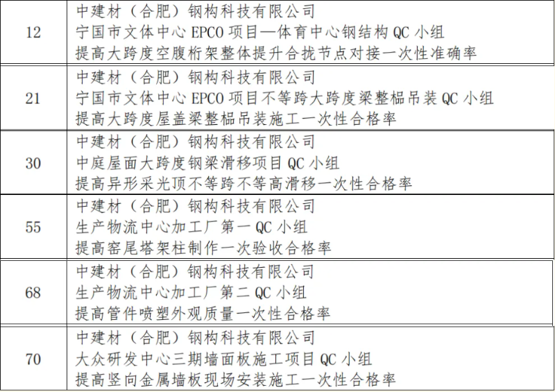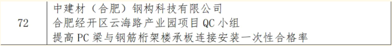 本次競賽旨在深入貫徹落實《質(zhì)量強國建設綱要》精神,引導鋼木建筑行業(yè)企業(yè)科學運用先進質(zhì)量管理方法,全面提升工程質(zhì)量管理水平。全國各地眾多鋼木建筑企業(yè)踴躍參賽,競爭異常激烈。公司高度重視此次競賽,精心組織內(nèi)部質(zhì)量管理小組進行成果申報。最終,公司多個質(zhì)量管理小組的項目成果在一眾參賽作品中成功突圍。其中,合肥經(jīng)開區(qū)云海路產(chǎn)業(yè)園項目QC小組的“提高 PC 梁與鋼筋桁架樓承板連接安裝一次性合格率”課題榮獲二等獎。該成果聚焦鋼桁梁底部作業(yè)難題,通過技術創(chuàng)新,大幅提高了施工效率與安全性,為業(yè)內(nèi)同類工程提供了極具價值的實踐范例。此外,中建材鋼構(gòu)公司還有6項成果榮獲三等獎,獲獎成果覆蓋鋼結(jié)構(gòu)制造、安裝以及施工工藝優(yōu)化等多個領域,均是公司質(zhì)量管理小組在實際工程項目中,運用科學方法,深耕技術創(chuàng)新與質(zhì)量改進工作的結(jié)晶。